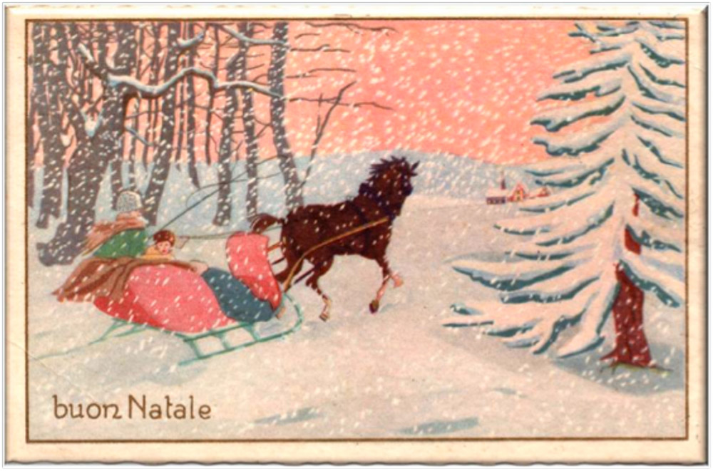 When the letters were ready, my brothers and I would go to the dining room where the Christmas Eve table was set up and we would place our cards between each dinner plate and bowl so that the corners would stick out a bit, making them visible by the intended recipient. Before dinner and after the prayer, the reading of our letters would begin. My mom was usually the first to read them. She would start with my oldest brother’s, then mine and then my youngest brother’s. She would always be moved, hugging and kissing us affectionately. Next, it was my dad’s turn. He would laugh, give us pecks on the cheeks, hug us, and tell us that he was grateful for our good intentions. We would continue reading our letters among laughter and grammatical corrections. After having opened and read all the cards, we would receive money as a prize for our resolutions. Sometimes, between dinner and going to the midnight Mass, we would recite Christmas poetry the school teacher had us memorize while everybody munched on traditional homemade sweets such as sfogliatelle and bocconotti or even walnuts, dried figs or dates. All together we played tombola – the Italian Christmas raffle or card games.
