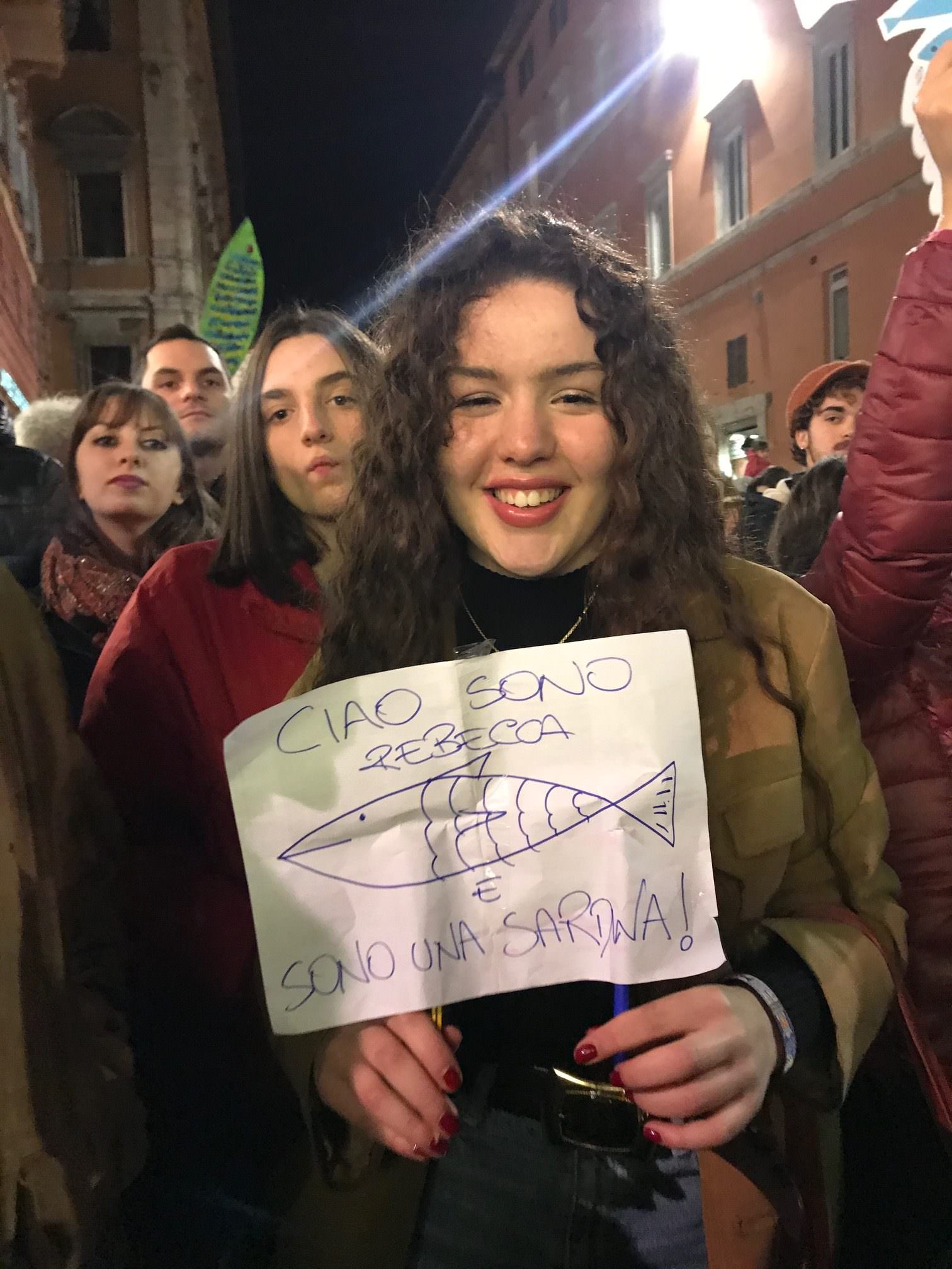 At the late-November Perugia gathering of Le Sardine, participants respected the norms set out by the young organizers, carrying – or wearing – only sardine images and avoiding any political references. Their posters promoted tolerance and harmony among all.