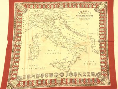 Un fazzoletto che commemora la vittoria dell’Italia nella Iª guerra mondiale è stato donato agli archivi della collezione italo americana del WRHS. L’oggetto è decorato con una mappa dell’Italia che include le nuove regioni che la nazione avrebbe dovuto reclamare come parte del Trattato di Londra del 1915. Il bordo è decorato con l’emblema di 88 città italiane e balcaniche ed evidenzia in ciascuno dei quattro angoli Roma, Trento, Trieste ed il Regno Saubado. Una dicitura nell’angolo in alto a destra inneggia alla vittoria grazie anche al valore dei suoi soldati. La donazione è particolarmente significativa giacché avvenuta in concomitanza con le celebrazioni del 100° anniversario della conclusione del conflitto bellico.