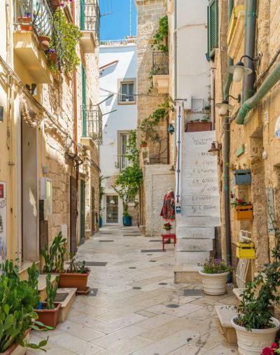 The origins of this enchanting place date back to the 4th century B.C. when Greek settlers founded the city of Neapolis. It flourished under the Romans and was important enough for Emperor Trajan to direct his Via Traiana, built between 108-110 A.D., through the town. Remains of this road include a bridge at Lama Monachile, just north of the historic center.