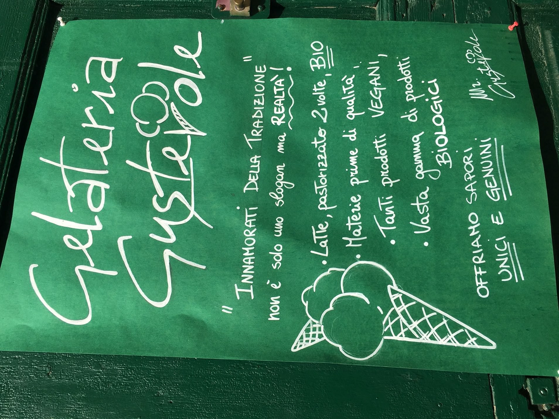 Figura 10 - Matera. Italians take pride in Organic ingredients in their foods, which they call Biologici. They also take pride in small, family-run businesses. Organic and vegan gelato! What could be better?