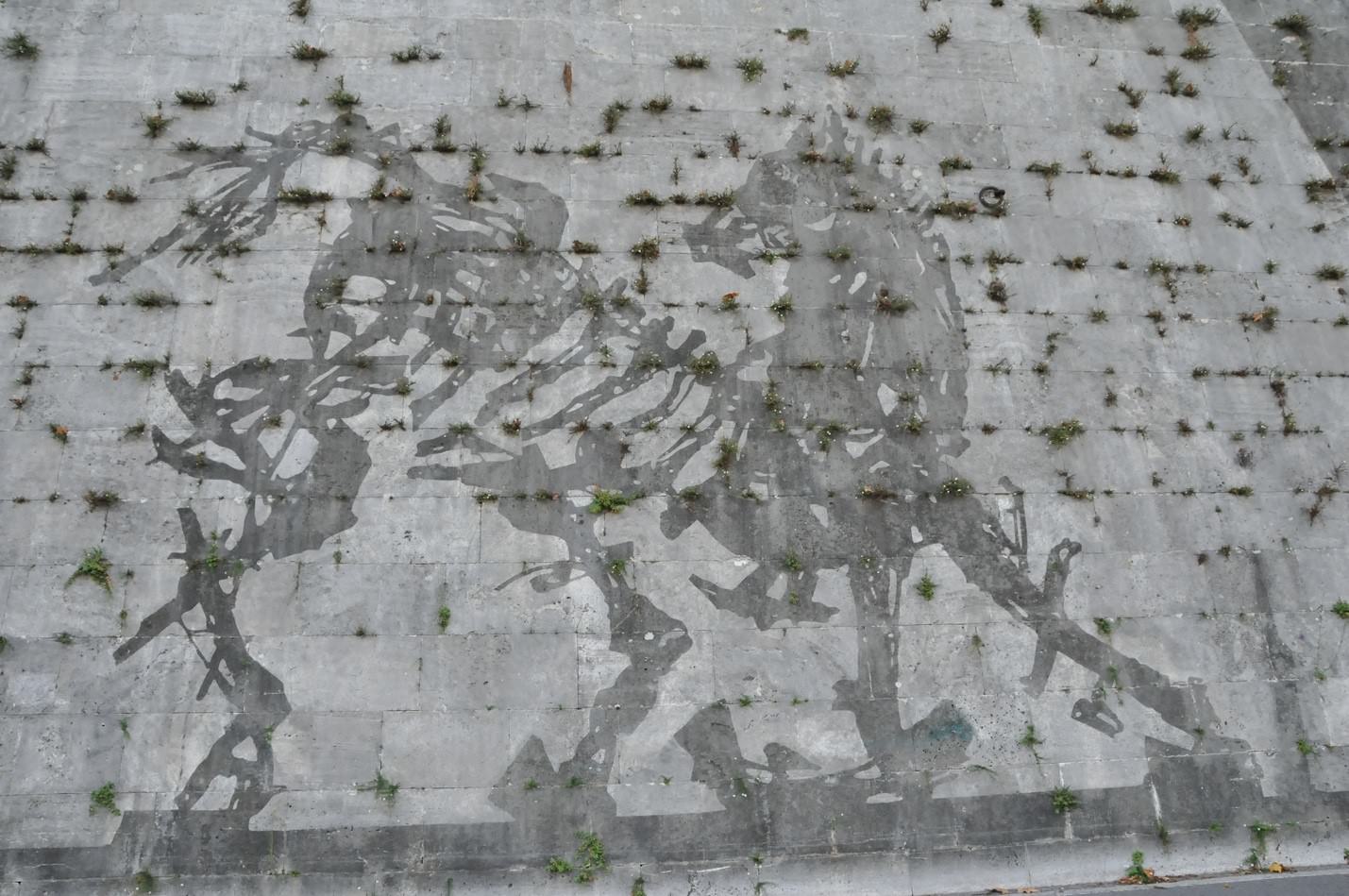 Figura 9 - Inspired by graffiti (an ancient art form itself), artist William Kentridge’s 550-meter long “Triumphs and Laments” along the walking path beside the Fiume Tevere/Tiber River, pictures scenes from ancient Rome’s history and myths that will be visible on the walls until they fade away.