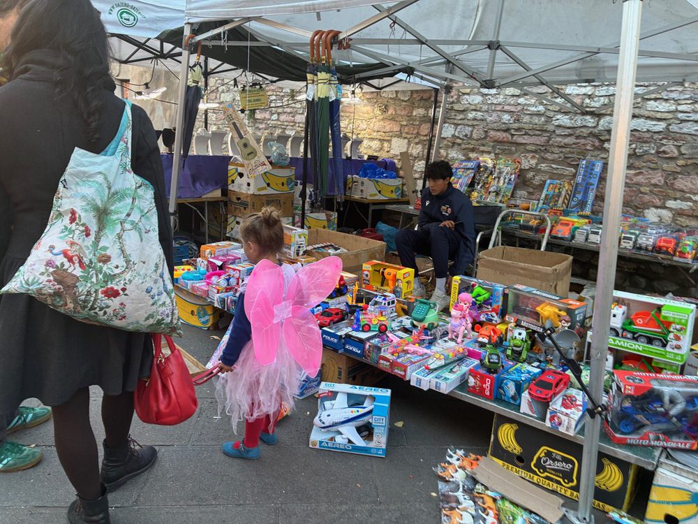 More than culinary temptations enticed visitors to the market. Toys, books, household objects, clothes, leather goods, pillows and bed sheets filled booths, too.