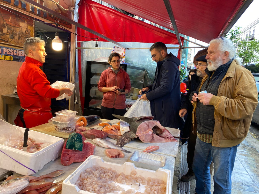 Nino is one of Claudio’s loyal clients and he took us there to purchase the fish he and his wife Maria would cook up for our lunch together. The line was long, but the Pescheria di Claudio visit was an adventure, for owner Claudio shares fish lore and recipes as he serves customers.