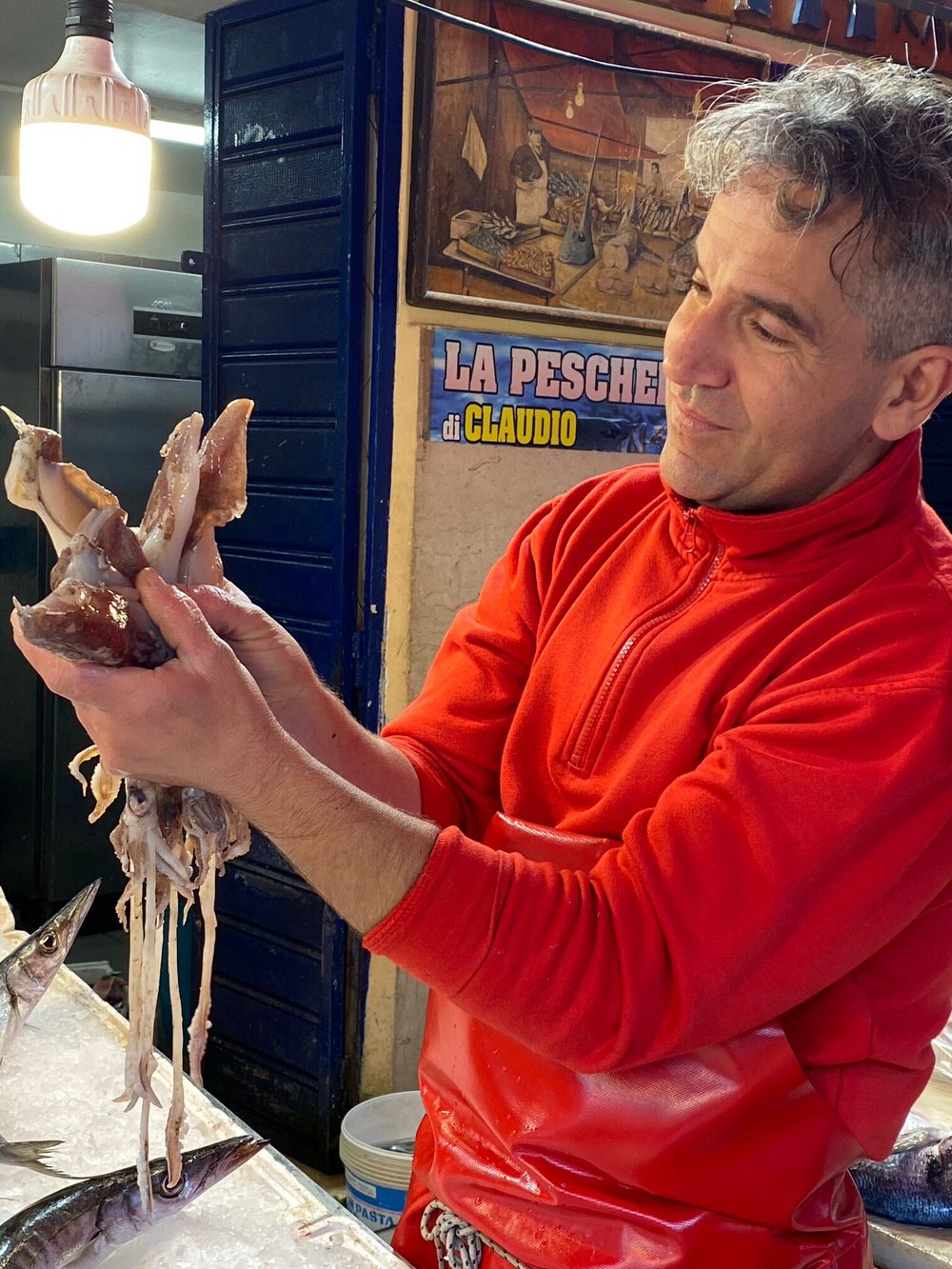 Claudio’s passione for seafood and seafood lore was evident. Claudio’s nonno Giovanni Battista opened la bancarella (market stall) in 1945 and the pescheria was passed on to his sons, Salvatore, Domenico and Antonino. Antonino had two sons, one being Claudio.